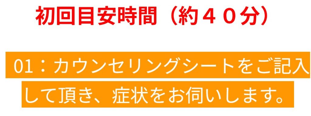 来られたら、先ず、カウンセリングシートをご記入して頂きます。